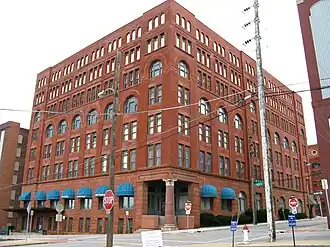 John D. Richardson Dry Goods Company, also known as the American Electric Company, is a historic commercial building located at St. Joseph, Missouri. It was designed by architect Edmond Jacques Eckel (1845–1934) and built in 1892. It is a seven-story, Richardsonian Romanesque style brick and stone building. It measures 196 feet by 136 feet. It features terra cotta faced facades on Jules and Third Street that are detailed with Renaissance derivation motifs.[2]: 3–4