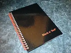 Black n' Red, a brand of books and pads of paper produced by John Dickinson Stationery Limited, featured a striking black and red design. The front and back covers of such books are black, with the text "Black n' Red" written in red in the bottom right corner of the cover. The spine or bind is also red. These books have become distributed by the Oxford brand within the Hamelin Group.[20]