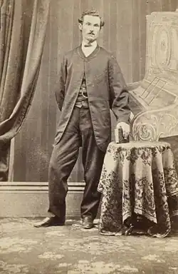In 1865 he bought a house in Octavia Street, St Kilda, and on 22 August 1871 he married his cousin, Mary Richmond, at the Wesley Church on Lonsdale Street. King never fully recovered from the privations suffered while on the expedition, and in 1869 his health began to deteriorate. During November and December 1871 he was so ill he was cared for at his sister's house in Drummond Street, Carlton. He returned home to St Kilda and died prematurely of pulmonary tuberculosis on 15 January 1872 aged 33.[5] His pall-bearers were Ferdinand von Mueller, Dr David Wilkie and Inspector James M Gilmour. He is buried in the Melbourne General Cemetery.