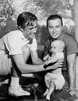 Lupton with daughter Rollin and Broken Arrow co-star Michael Ansara, 1957. | |