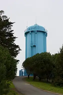 La Grande Tank is a prominent blue 350,000-US-gallon (1,300,000 L; 290,000 imp gal) water tank on the western edge of the park, visible from Interstate 280 and the Excelsior neighborhood.[24] It was built in 1956[25] and stands 80 feet (24 m) tall.[24] During the seismic upgrades performed in 2006, money was set aside to improve what became the Philosopher's Way trail.[25]