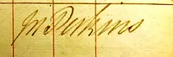 Signature of Captain John Perkins from the Logbook of HMS Arab 1800, held at The National Archives, Kew, London | |