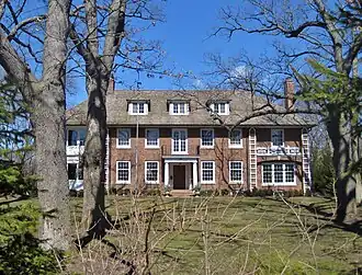 John Rogerson Montgomery II was born in Chicago on 8 March 1866. His father William A. Montgomery (1838–1895) was born in Lancaster, Pennsylvania, served in the 15th Wisconsin Volunteer Infantry rising to the rank of Captain and practicing law in Chicago from 1867 to 1895. His mother Was Ellen S. Smith (c. 1840 – 1866), who died nine days after his birth. He was named for his grandfather, noted Lancaster County attorney and shares a name in common with his father, grandfather, father's older brother and with his son. John graduated from Beloit College, Montgomery received a law degree in 1889; his father, grandfather and great grandfather had all been lawyers. When he was admitted to the bar he joined his father's practice. He became a successful attorney in the partnership of Montgomery, Hart, Pritchard & Herriott. Montgomery served as president of the Chicago Bar Association in 1920 and the Illinois Bar Association in 1925. He was a charter member of the American Law Institute when it was founded in 1923. He also served on the board of the Chicago Theological Seminary and was a member of the Union League Club of Chicago & University Club of Chicago. Montgomery chose architect Howard Van Doren Shaw for his estate in 1909 because Shaw had emerged as the premier architect in the Chicago area for stately country houses. Over the span of his career, Shaw would design sixty-four such estates. In 1929, the Montgomery family commissioned Granger & Bollenbacher to design a matching garage for the property.[2]