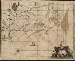 In that year he published the first volume of charts and sailing directions, entitled The English Pilot. It was dedicated to the Duke of York, to whom he had appealed from prison. The trade in maritime maps and charts had until then been dominated by the Dutch, and, in many instances, earlier Dutch plates, from which the original title had been replaced by an English title, were used here. The English Pilot ran through many editions, until the end of the eighteenth century, new maps from time to time taking the place of the old.[1][2]
