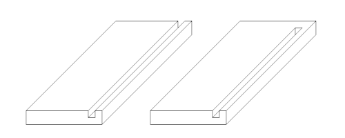 Each piece has a groove cut all along one edge, and a thin, deep ridge (the tongue) on the opposite edge. If the tongue is unattached, it is considered a spline joint. |