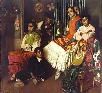In 1899, he took that advice and moved to Madrid, where he studied with Emilio Sala. This involved several trips to Paris, to view the Old Masters in person. After paying a visit to the Exposition Universelle (1900), he produced a long series of Granadian landscapes and genre scenes, some of which earned him honorable mention at the National Exhibition of Fine Arts in 1904.