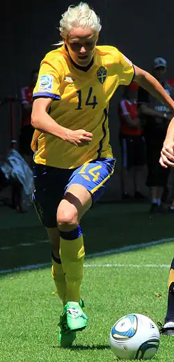 Anna Lenita Josefine Öqvist (born 23 July 1983) is a Swedish former footballer who played for Montpellier of the French Division 1 Féminine and the Swedish national team.[2] She scored a critical goal in the 86' minute of the 2003 FIFA Women's World Cup semifinals against Canada to put Sweden through to the final.[3] Nicknamed Jossan, she was named the Swedish Rookie of the Year in 2003.[4]