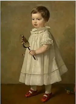 Lies was a gifted portrait painter as shown by his two portraits of the wife and daughter of his friend Leys. In particular the portrait of the young daughter of Leys stands out in its simplicity and brings to mind the children's portraits of the 17th-century Flemish artists Cornelis de Vos and Pieter van Lint.[8]