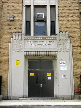 Joseph W. Catharine School is a historic elementary school located in the Mount Moriah neighborhood of Philadelphia, Pennsylvania. It is part of the School District of Philadelphia. The building was designed by Irwin T. Catharine and built in 1937–1938. It is a three-story, six-bay, yellow brick in the Moderne-style. It features a main entrance with decorative stone surround, stone sills, and stone coping atop the building.[2]
