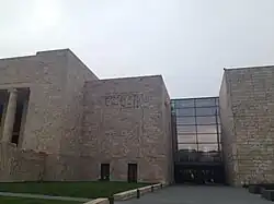 The Joslyn Memorial building opened in 1931 and consisted of various art galleries, a concert hall, a lecture hall, an art library, classrooms, and an atrium with a fountain.[4][5] In 1938, the Memorial was listed as one of the one hundred finest buildings in the United States.[4] Several decades after the Memorial building opened to the public, it was running out of space for staff and the growing collection.[6] Eugene Kingman, the director of the Joslyn during the 1960s, wanted the Joslyn to be the "Smithsonian of Omaha," a place where science and the arts could come together.[6] With this idea in mind, he wanted to expand the Memorial and construct additional buildings, which would include a science museum and a planetarium.[6] Lack of funds for the project and Kingman's departure in 1969 put an end to this plan.[6] However, Kingman saved quite a bit of historical material as part of his vision for the Memorial, which was later donated to historical museums around Omaha.[6] After his departure, the Joslyn Memorial returned to a strong focus on the arts.[6]