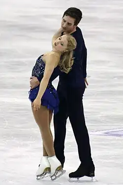 In January, Séguin/Bilodeau won the silver medal at the 2018 Canadian Championships, having placed second in both segments, and were nominated to represent Canada at the Olympics.[18] The two placed 12th in the short, 8th in the free, and 9th overall at the 2018 Winter Olympics, which took place in February in Pyeongchang, South Korea.[3] The pair had less success at the 2018 World Championships in Milan, Italy. Ranked 22nd in the short program, they would not qualify to the free skate.
