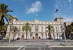 The advance of the Santiago Cavalry Regiment was also halted at Plaça del Cinc d'Oros,[119] where workers and Assault Guards had manned barricades. Fighting continued around the Barcelona Customs Office, the Barcelona Military Government building, the Columbus Monument, the Drassanes barracks and the Portal de la Pau. There was heavy crossfire across La Rambla, between the Military Government building and the Drassanes barracks. Higher up La Rambla, the transport workers' and metalworkers' unions built a barricade across the street, containing the soldiers to the port area.[117] Troops in Parc de la Ciutadella were attacked soon after leaving their barracks, forcing them to retreat and barricade themselves inside their base.[101] 50 soldiers from the Sant Andreu barracks were also routed by Assault Guards at the intersection of Avinguda Diagonal and Carrer de Balmes.[120]