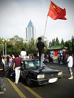 A series of violent riots over several days broke out on 5 July 2009 in Ürümqi, the capital city of the Xinjiang Uyghur Autonomous Region, in northwestern China. The first day's rioting, which involved at least 1,000 Uyghurs,[12] began as a protest, but escalated into violent attacks that mainly targeted Han people. According to Chinese state media, a total of 197 people died, most of whom were Han people or non-Muslim minorities,[10][7] with 1,721 others injured[8] and many vehicles and buildings destroyed. Many Uyghurs disappeared during wide-scale police sweeps in the days following the riots; Human Rights Watch (HRW) documented 43 cases[13] and said figures for real disappearances were likely to be much higher.[14]
