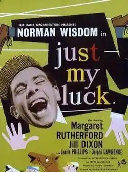 Just My Luck is a 1957 British sports comedy film directed by John Paddy Carstairs and starring Norman Wisdom, Margaret Rutherford, Jill Dixon and Leslie Phillips.[1] It was written by Peter Cusick, Alfred Shaughnessy and Peter Blackmore.