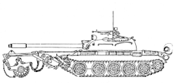 The KMT-5M is a Soviet tank mounted mechanical mine clearing device in the KMT series that is designed to disable anti-tank mines by plowing up or mechanically breaking them from the lines in front of tank tracks. It was first introduced in the 1960s.[1] The device can be mounted to T-54/55, T-62 and T-64 tanks. The plow has nowadays been mostly replaced by the modern version KMT-7 that can be installed to T-72, T-80 and T-90 series of tanks.[2][3] It was however recently copied by the Romanians in their D-5M mine clearing system.