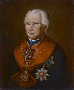In 1780, Cieciszkowski was appointed vicarius in spiritualibus for Warsaw and Masovia.[7] He was appointed vicar of the Church of the Holy Sepulchre in Miechów on 22 March 1781 and was awarded the Order of Saint Stanislaus the following year.[8]