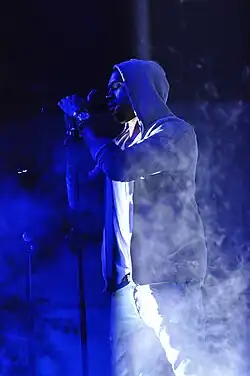 West's seventh studio album, The Life of Pablo (2016), made history by becoming the first album to top the Billboard 200, predominantly from streaming, while also having the second-highest total of first-week streams for an album.[12] In June 2018, West released both his eighth studio album, Ye,[13] and his second collaborative album, Kids See Ghosts (with Kid Cudi).[14] His ninth studio album, Jesus Is King (2019), became West's first to top the Top Christian Albums, and Top Gospel Albums charts.[15][16] His tenth studio album, Donda (2021), recorded the second-biggest first week performance in Spotify's history.[17][18] Donda 2, a demo album, was released in February 2022 via the Stem Player. In February 2024, he released the collaborative album Vultures 1 with Ty Dolla Sign, which became his 11th consecutive album to debut at No. 1 on the Billboard 200, the most of any artist.[19] In August 2024, he followed up with Vultures 2, again collaborating with Ty Dolla Sign; the album debuted at No. 2 on the Billboard 200.[20]