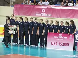 The Kazakhstan women's national volleyball team represents Kazakhstan in international volleyball competitions. The team qualified for the 2008 Summer Olympics by ending up in fifth place at the Olympic Qualifier in Japan.