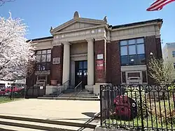 When the town's growth demanded larger quarters, the present Kearny Town Hall, built of Indiana limestone, was erected in 1909.[34]