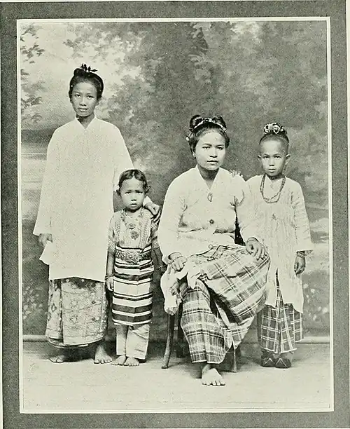 ![]() A Kelantanese Malay woman with children in traditional attire, 1908. | |