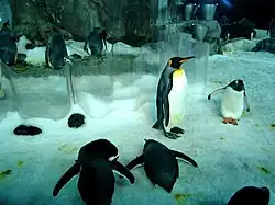 - Antarctic Ice Adventure and Scott Base (formerly Antarctic Encounter) – This exhibit was opened in 1994, and is the first exhibit encountered by visitors. Visitors can view the aquarium's penguins through glass in their temperature controlled habitat. Visitors then pass through a recreation of the hut used by Captain Robert Falcon Scott during his South Pole expedition in 1912. The aquarium has a colony of king penguins and gentoo penguins. A snowcat ride used to go around the area but was changed in 2012 to a walk around exhibit.[4]