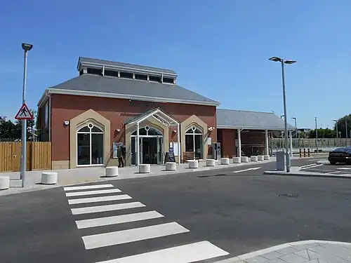 Although the initial completion date was August 2017, which was due to be delivered on time by the county council, the start-of-service date was moved to 10 December 2017 owing to a delay in track and signalling work by Network Rail.[24] Subsequently, Network Rail completed the necessary track and signalling interventions required to facilitate the station opening by 10 December 2017, but the station build was not complete.
