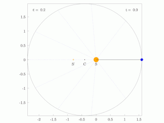 For an ellipse 0 < ε < 1 ; in the limiting case ε = 0, the orbit is a circle with the Sun at the centre (i.e. where there is zero eccentricity).