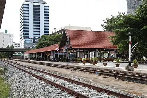 Khlong Tan railway station (Thai: สถานีรถไฟคลองตัน) is a railway station in Bang Kapi Subdistrict, Huai Khwang District, Bangkok. The station is a part of eastern railway line and is a class 2 railway station located 9.85 km (6.1 mi) from Hua Lamphong (Bangkok railway station).