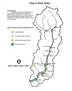 Map of Swat including Khwaja Khel settlement