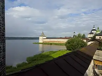 In the 16th century, the monastery was the second richest landowner in Russia, after its model, the Trinity Monastery near Moscow. Ivan the Terrible not only had his own cell in the cloister, but also planned to take monastic vows here. The cloister was also important as a political prison. Among the Muscovite politicians exiled to Kirillov were Vassian Patrikeyev, Tsar Simeon Bekbulatovich, Patriarch Nikon, and the prime minister Boris Morozov.[1] In December 1612, the monastery was besieged by Polish-Lithuanian vagabonds, the Lisowczycy, who failed to capture it.