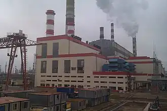 Kirishi Power Station (Russian: Киришская ГРЭС) is a thermal power station (GRES) at the town of Kirishi, Kirishsky District, Leningrad Oblast, Russia. The power plant is located adjacent to a larger Kirishi oil refinery.[1] Installed electrical capacity of the power station reached 2595 MW after completion of modernization program for unit 6 in 2011, which included installation of two gas turbines for this unit to utilize combined cycle with total increase of capacity 500 MW and efficiency 20%.[2] The heating capacity is 1,234 Gcal/h.