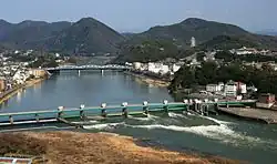 The Kiso River (木曽川, Kiso-gawa) is a river in the Chubu region of Japan roughly 229 km (142 mi) long, flowing through the prefectures of Nagano, Gifu, Aichi, and Mie before emptying into Ise Bay a short distance away from the city of Nagoya.[1] It is the main river among the Kiso Three Rivers (along with the Ibi and Nagara rivers) and forms a major part of the Nōbi Plain. The valley around the upper portion of the river forms the Kiso Valley.