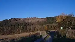 Most of the slope is covered by vegetation which is not native to the location – black pine (Pinus nigra), European larch (Larix decidua), black locust (Robinia pseudoaccacia) and Norway spruce (Picea abies). The original community of oak-hornbeam forests (sessile oak (Quercus petraea), common hornbeam (Carpinus betulus), field maple (Acer campestre)) can only be found in the upper parts of the profile. The formerly woodless areas tend to be covered by bushes of dog-rose (Rosa canina), blackthorn (Prunus spinosa) and common dogwood (Cornus sanguinea), atop the hill we may find an area of xerothermic grasslands such as spotted knapweed (Centaurea stoebe) and hairy oxytropis (Oxytropis pilosa).[5]