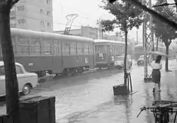 The city tram of Kobe opened in 1910 by a private company and was purchased by the city government in 1917. As of 1952, it operated 35.6 km of tracks. The tram system was totally abolished by 1971. Between 1917 and 1971, the trams operated approximately 600 million kilometers and transported 5.6 billion passengers.[1]