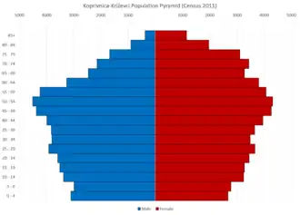 - ^ Ostroški, Ljiljana, ed. (December 2015). Statistički ljetopis Republike Hrvatske 2015 [Statistical Yearbook of the Republic of Croatia 2015] (PDF). Statistical Yearbook of the Republic of Croatia (in Croatian and English). Vol. 47. Zagreb: Croatian Bureau of Statistics. p. 62. ISSN 1333-3305. Retrieved 27 December 2015.