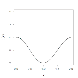 then the potential function has local maximum at ; there is a solution in which starts at this point at 'virtual time' , eventually slides down to the local minimum, then back up the other side, reaching an equal height, and then reverses direction, ending up at the local maximum again at time . In other words, approaches as . This is the characteristic shape of the solitary wave solution.