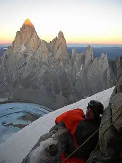 Kristoffer Szilas at a bivouac during an ascent of Cerro Torre in Patagonia. | |
