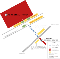 - 8 KL Monorail: MR1 KL Sentral Monorail station at Jalan Tun Sambanthan can be accessed via NU Sentral shopping mall located adjacent to KL Sentral complex.
