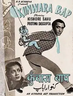 Kunwara Baap (Bachelor Father) is a 1942 Hindi comedy film directed by Kishore Sahu.[1] The film was the directorial debut for Sahu, and N. R. Acharya's debut as a producer. Acharya had just started his production company Acharya Arts Productions.[2] The story was written by Kishore Sahu who went on to write and direct films like Kali Ghata, Mayurpankh and others.[3] The music direction was by Ramchandra Pal.[4] The film had Kishore Sahu starring as the bachelor father with co-stars Protima Dasgupta, Anjali Devi, Nana Palsikar, Amritlal Nagar and Moni Chatterjee.[5]