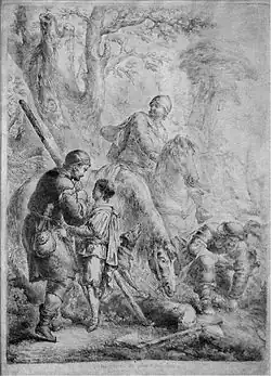 Kunz went to Bohemia and lived in the castle of Isenburg[7] until, on 7 July 1455, Kunz kidnapped Frederick's two sons, Ernest and Albert, from the castle of Altenburg in what was called the Prinzenraub (English: "The stealing of the princes").[8][9] Since Kunz never got to a position where he could demand ransom payments, it was presented that he planned and executed this desperate measure as revenge against Frederick II.[2] Prince Albert was rescued on the same night as the kidnapping, when Kunz was overwhelmed and captured by a charcoal burner.[2] Prince Ernst was released four days later when Kunz's accomplices released him in exchange for pardons.[10] On 14 July 1455 Kunz von Kaufungen was beheaded by order of Frederick at the marketplace of Freiberg.[2][9]