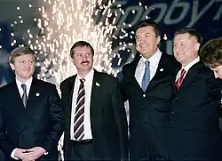 Kushnaryov quickly became one of the leaders of the party along with Yanukovych and Rinat Akhmetov. Considered by many to be among the party's main ideologues, Kushnaryov could be frequently seen on television debating public policy.[2] In 2005 he published a book (Red Horse: Notes of a Counterrevolutionary) denouncing the Orange Revolution.[3]