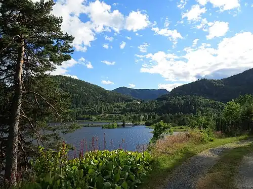 Kviteseid Church (Norwegian: Kviteseid kyrkje) is a parish church of the Church of Norway in Kviteseid Municipality in Telemark county, Norway. It is located in the village of Kviteseid. It is the main church for the Kviteseid parish which is part of the Øvre Telemark prosti (deanery) in the Diocese of Agder og Telemark. The brown, stone church was built in a long church design in 1915 using plans drawn up by the architect Haldor Larsen Børve. The church seats about 320 people.[1][2][3][4]