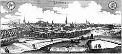 Matthäus Merian cityscape of Lüneburg, which served as the basis for the mural