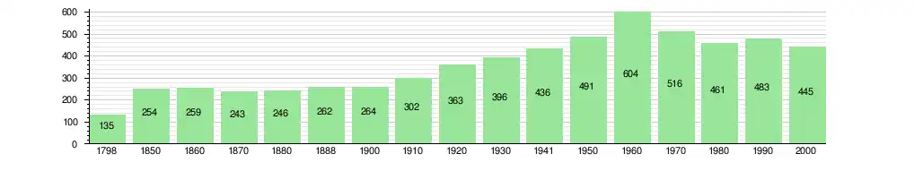 As of 2000, there were 189 private households in the municipality, and an average of 2.3 persons per household.[7] There were 55 households that consist of only one person and 12 households with five or more people. Out of a total of 193 households that answered this question, 28.5% were households made up of just one person and there were 1 adults who lived with their parents. Of the rest of the households, there are 61 married couples without children, 54 married couples with children There were 12 single parents with a child or children. There were 6 households that were made up of unrelated people and 4 households that were made up of some sort of institution or another collective housing.[8]