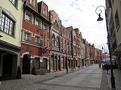 After the outbreak of World War II, the persecution of indigenous Poles, including Kashubians, intensified, and the patients of the local psychiatric hospital were murdered in Piaśnica, however, the Polish resistance movement remained present in the district.[18] In 1942, the Germans founded a subcamp of the Stutthof concentration camp and sent prisoners from the Buchenwald concentration camp there.[19] Further prisoners were sent from the main Stutthof camp, and the subcamp was dissolved only in February 1945, during the German-organized evacuation of the Stutthof main camp.[19] The Germans also operated a forced labour subcamp of the Stalag II-B prisoner-of-war camp for Allied POWs in the town.[20] The town was occupied without resistance by the Soviet Red Army on 10 March 1945. Most of the Old Town burned in the subsequent Soviet rampage, although the Gothic Church of St. James and the Teutonic castle survived.[14] During this time about 600 people committed suicide.[21]