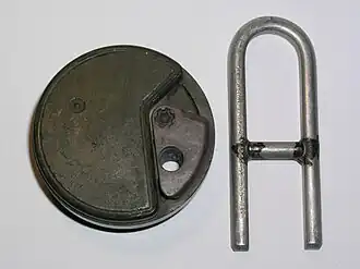 The mine was roughly the size of a tin of shoe polish, made of plastic and coloured olive green. There was enough metal in their fuze to make them detectable.[1] Two inert training versions were available. One was bright orange to allow it to be easily spotted and recovered; the other was made from bio-degradable compressed peat.