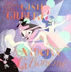La Bohème is a 1926 American silent drama film directed by King Vidor, based on the 1896 opera La bohème by Giacomo Puccini. Lillian Gish and John Gilbert star in a tragic romance in which a tubercular seamstress sacrifices her life so that her lover, a bohemian playwright, might pen his masterpiece. Gish, at the height of her influence with Metro-Goldwyn-Mayer studios, asserted significant control over the production, determining the story, director, cast, cinematography, and costume design.[1] In February 2020, the film was shown at the 70th Berlin International Film Festival, as part of a retrospective dedicated to King Vidor's career.[2]