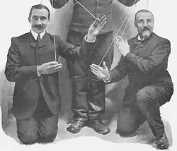 The song is a cakewalk and an early attempt by a European composer to tackle nascent American jazz. John Philip Sousa and his band had introduced the cakewalk to France during their appearance at the 1900 Paris Exposition, but it gained little notoriety there until a danced version was performed in the revue Joyeux nègres (The Happy Negroes) at the Nouveau Cirque in October 1902. The show ran for over a year and sparked a national craze.[2][3] Satie was intrigued with the new style and, as Darty's occasional accompanist and songwriter, prepared to capitalize on it. On May 20, 1904, he registered a piano piece called "Stand-Walk" with SACEM that was virtually identical with the keyboard part of "La Diva de l'Empire" except for its key. Satie, Bonnaud and Blès adapted it into a song for Darty, who was delighted with it.[4] The refrain is in G major, with a syncopated ragtime melody strutting above an accompaniment in moderate march tempo. The two stanzas are in D major.