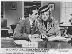 La pequeña señora de Pérez (Spanish for "Little Mrs. Pérez") is a 1944 Argentine comedy film of the classical era of Argentine cinema, directed by Carlos Hugo Christensen and starring Mirtha Legrand and Juan Carlos Thorry. It tells the story of Julieta Ayala, a 17-year-old girl who drops out of high school to marry young doctor Carlos Pérez, only to soon re-enroll undercover after finding married life boring.[1]