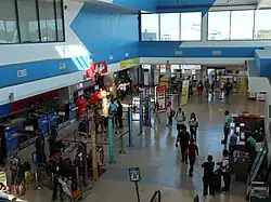 The airport has security screening machines in the main entrance and all entrances to boarding gates, check-in counters and drop-off counters by various airlines. Also, there's a second floor for gates 1-3 while 4 is for arrivals only and bypass gate. All of the second-floor gates have jetways. With the new extension includes new gates 5 and 6 are now open but located at the ground level and the aircraft can be accessed or boarded by the available aircraft stairs. There are few amenities such as restrooms, elevators, small playrooms, lounges and food stores. Gate 4 was used when there is no parking space for aircraft in the three major boarding gates and the landing time has altered or putting the aircraft in a holding pattern before landing.
